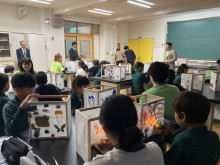 秩父市立南小学校(秩父市野坂町)で11月13日、一般社団法人「こどものまちプロジェクト」が出前授業を行い、4年生児童らが「秩父絹市」を彩るあんどん作りに挑戦した。
