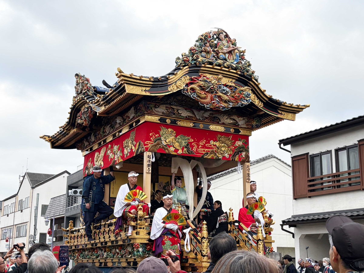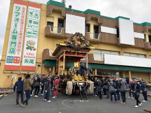 秩父神社の例大祭「秩父夜祭」に向け12月2日13時過ぎ、屋台芝居当番町の中町屋台が旧ベスト電器(秩父市中町)前に到着した。