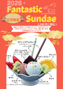 秩父の「ジェラテリアHANA(ハナ)」(秩父市定峰)が、「ジェラート専門店が本気で作るサンデー」をコンセプトにした正月限定商品「ファンタスティックサンデー」を来年1月1日から期間限定で提供する。