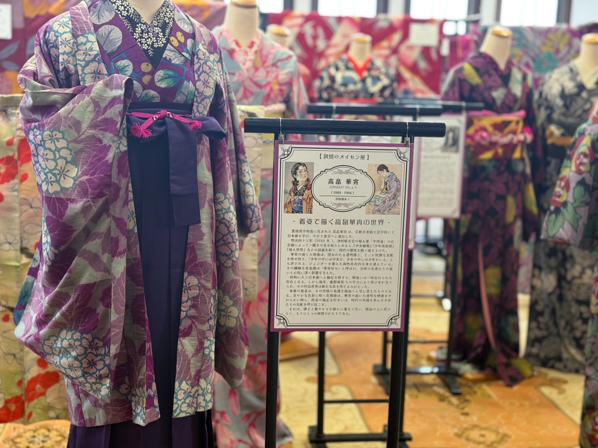 ちちぶ銘仙館(秩父市熊木町)内のギャラリーで4月18日、春の企画展「叙情のメイセン展 叙情画家と銘仙キモノの世界」が始まった。