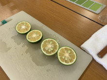 形状は丸く、10個のサイズがそろっていて、傷のないカボスはポイントが高い