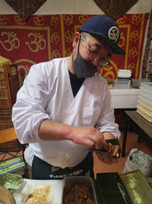 秩父市寺尾のカレー店「ほんとのインド料理とカレーの店・ズベールおじさんのインドカレー」で1月10日、石川県能登町のすし店「津久司(つくし)」による出張すしイベントが行われた。