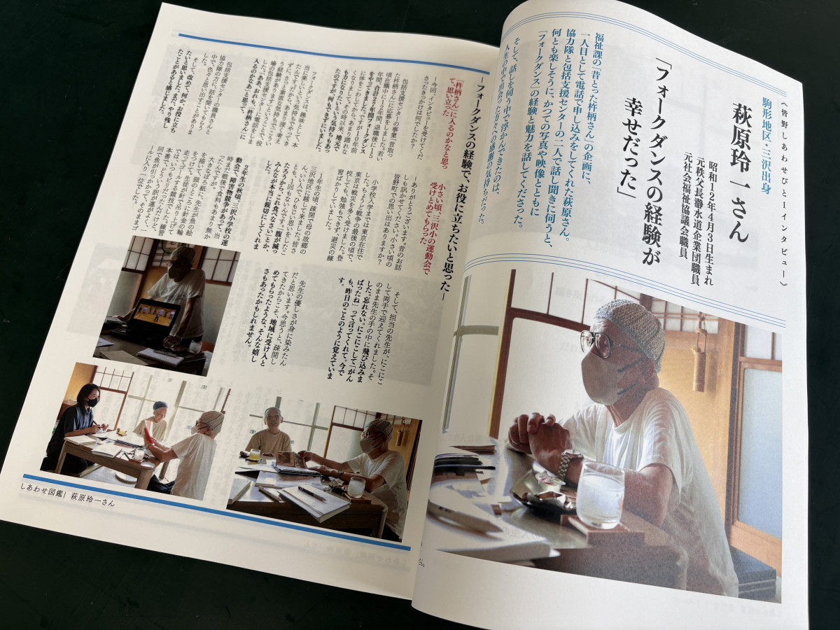 皆野町の地域おこし協力隊・宇佐川拓郎さんが10月26日、町民の経歴や「しあわせ」を取材してまとめた冊子「みんなの(皆野)しあわせ図鑑」を発行する。