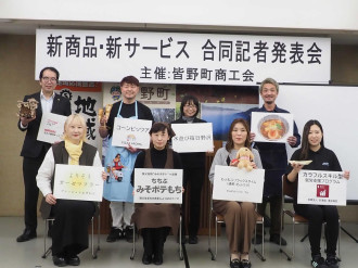 皆野町商工会が11月27日、皆野町文化会館(皆野町皆野)で新商品・新サービスの合同記者発表会を開き、町内事業者8社が登壇した。