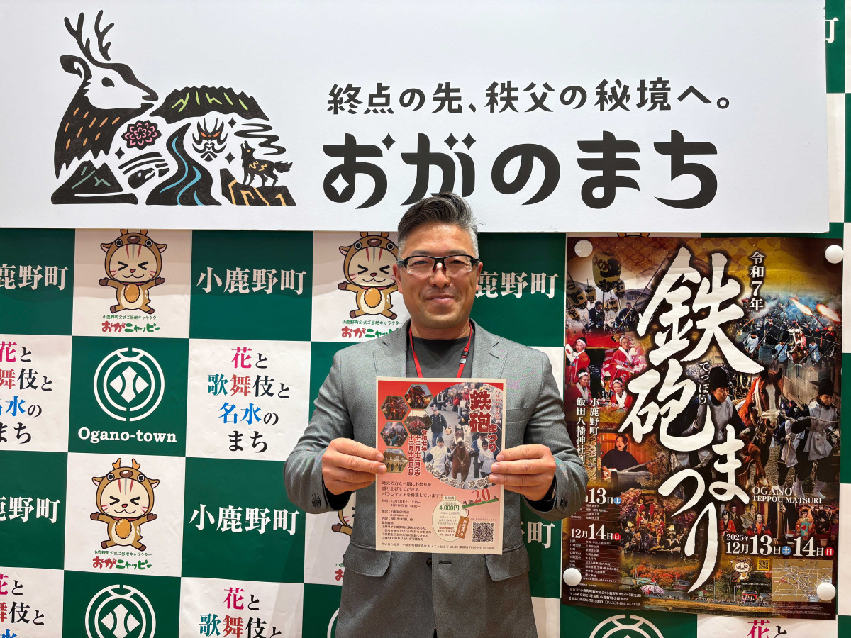 小鹿野町観光協会が現在、12月13日・14日に行う「鉄砲まつり」で屋台や笠鉾(かさぼこ)の曳行(えいこう)に参加できる特別体験プログラムの希望者を受け付けている。