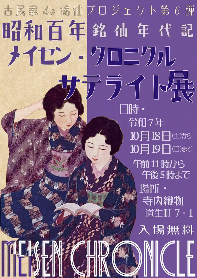 秩父で銘仙着物を展示する「古民家 de 銘仙プロジェクト」の第6弾「昭和百年銘仙年代記メイセン・クロニクル サテライト展」が10月18日・19日、寺内織物母屋(秩父市道生町)で開催される。