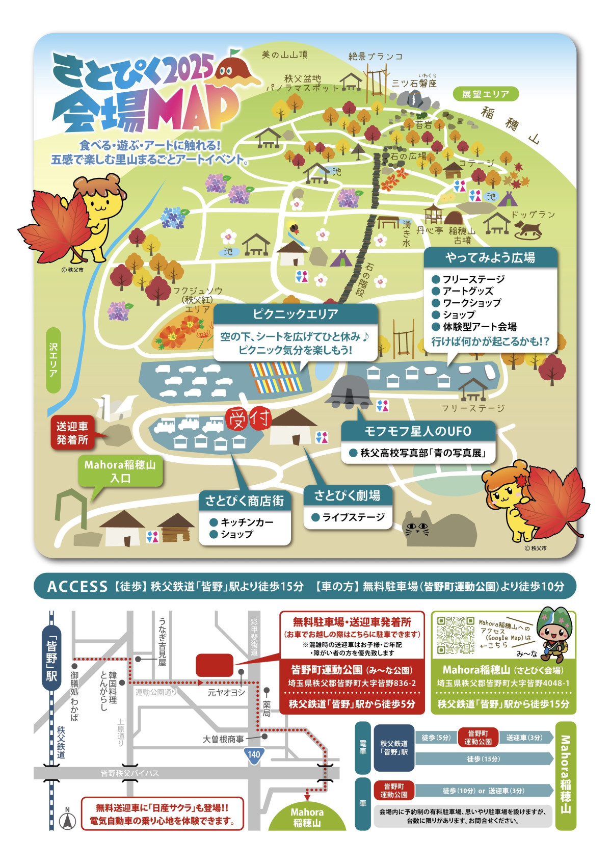 皆野町の「Mahora稲穂山」(皆野町皆野)で10月19日、「アートや遊びを通して『やってみたい』を応援する」イベント「みなの里山フェスティバル~食とアートとピクニック(通称=さとぴく)」が開かれる。
