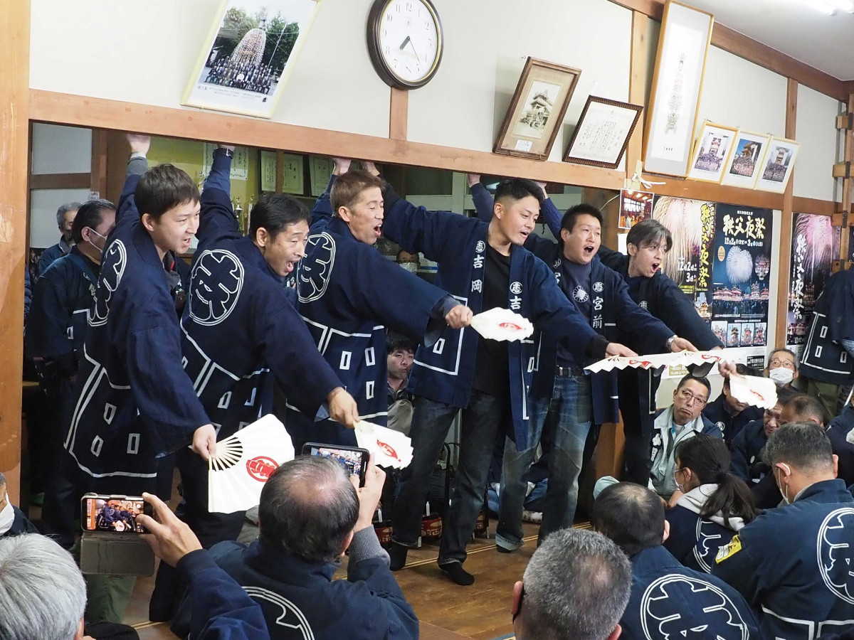 秩父夜祭を前にした恒例行事「下郷太鼓ならし」が11月25日、大畑町民会館(秩父市大畑町)で行われ、約200人の関係者が参加した。