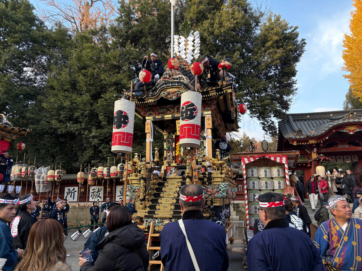 秩父神社に飾り置きされる中近笠鉾(3日15時30分頃)