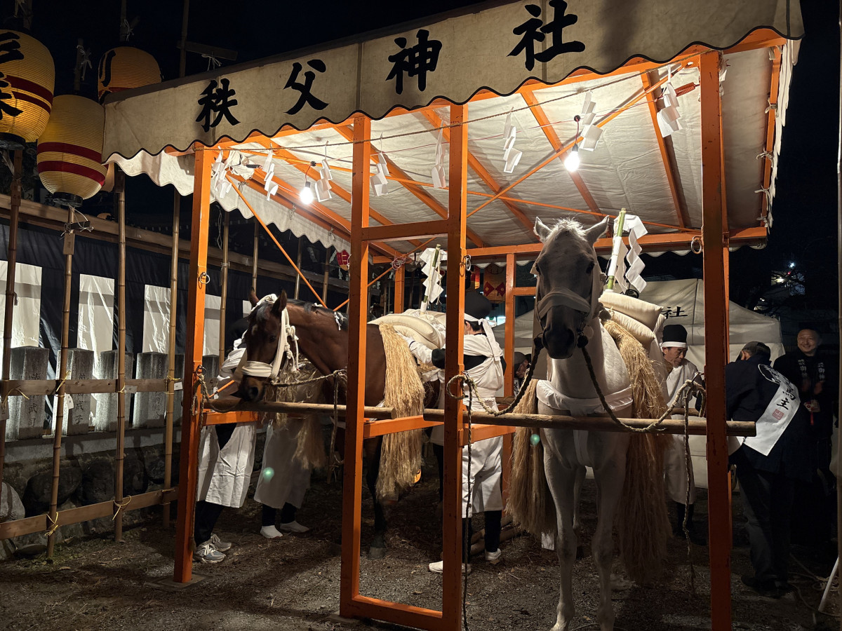秩父神社(秩父市番場町)の例大祭「秩父夜祭」が12月3日に大祭を迎え、6基の屋台・笠鉾(かさぼこ)が秩父市街地を巡行した。