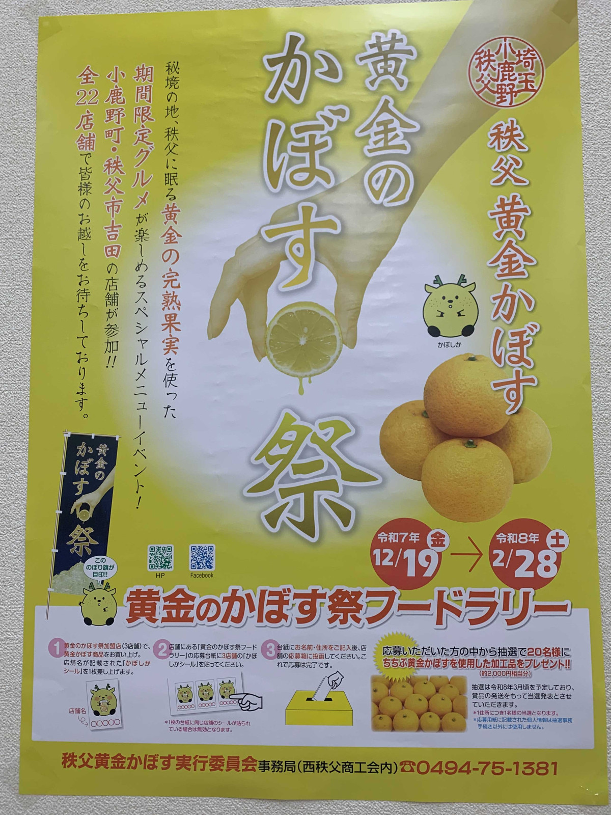 西秩父エリア(小鹿野町・秩父市吉田地区)で12月19日、「秩父黄金かぼす」をテーマにしたグルメイベント「黄金のかぼす祭」が始まった。