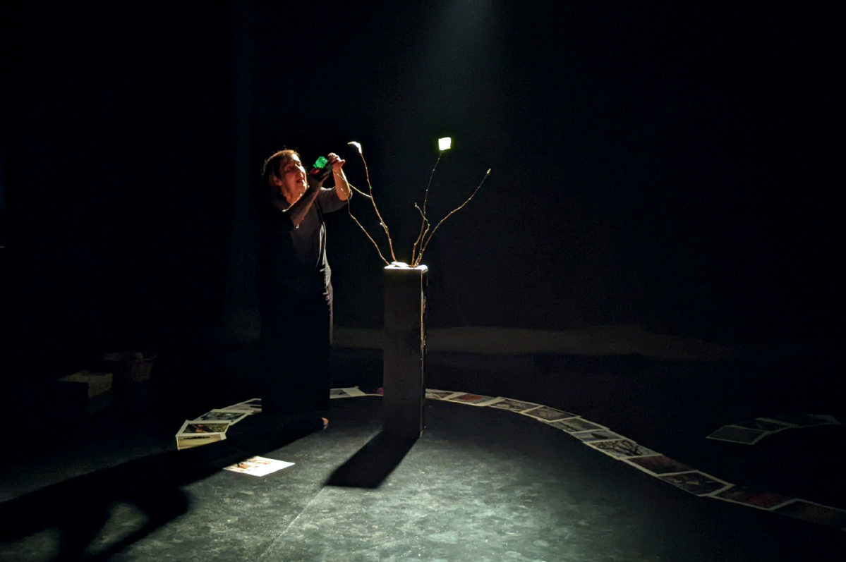 照明や音楽、影、砂やオブジェなどを用いながら場面を積み重ねていく