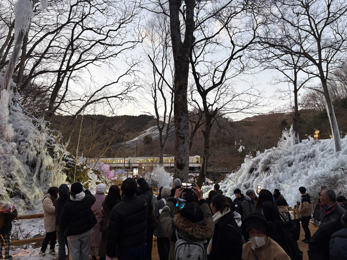 横瀬町の芦ヶ久保駅から徒歩10分の場所にある会場で1月8日、「あしがくぼの氷柱」の公開が始まった。