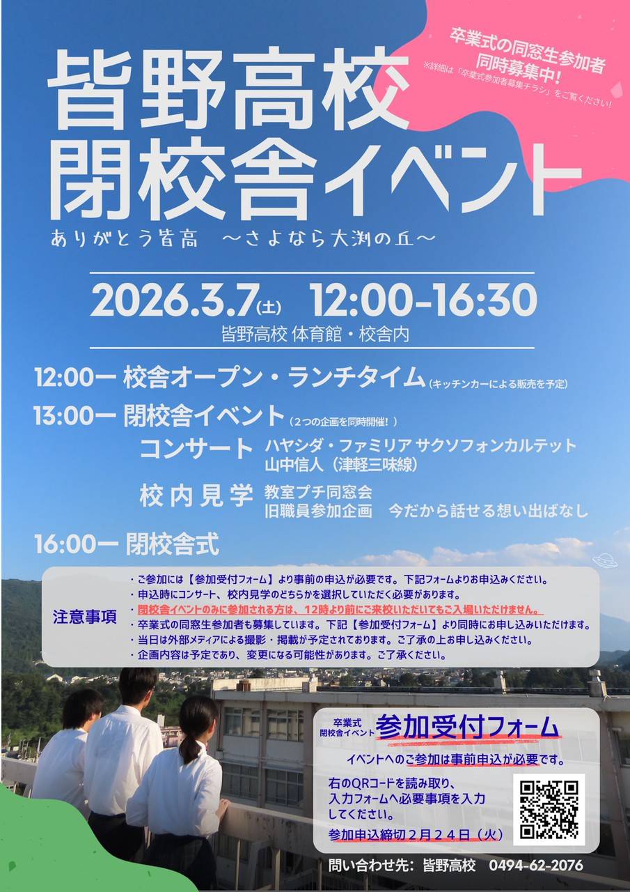 3月に閉校を迎える埼玉県立皆野高校(皆野町大渕)が2月17日、公式ホームページ内の「デイリーニュース」で、土曜・日曜・祝日を含む1000日連続の書き込みを達成した。