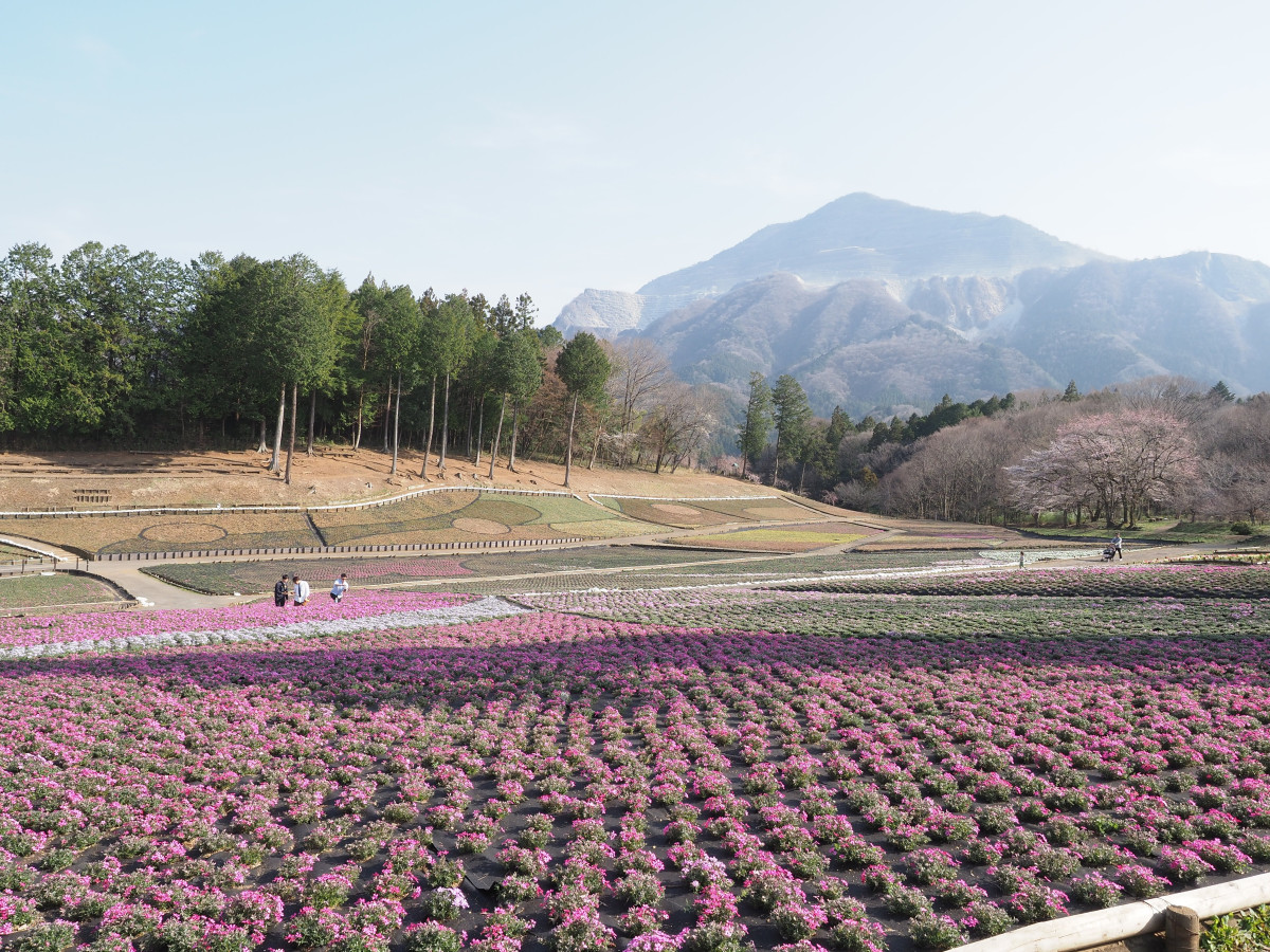 埼玉県立皆野高校の生徒や同窓会員ら約10人が3月24日、羊山公園(秩父市大宮)「芝桜の丘」で芝桜の植栽を行った。