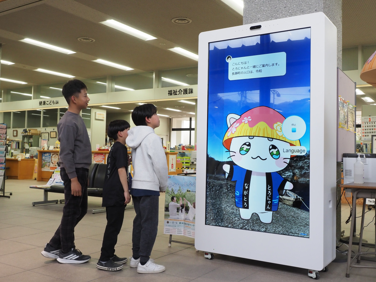 長瀞町は3月27日、町公式マスコットキャラクター「とろにゃん」を3Dアバター化し、AIアシスタントとともに行政・観光案内を行う実証実験を町役場1階ロビーで始めた。