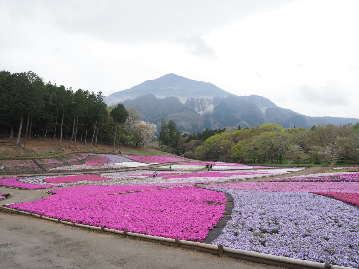芝桜の丘は秩父のシンボルとされる武甲山の麓に位置する