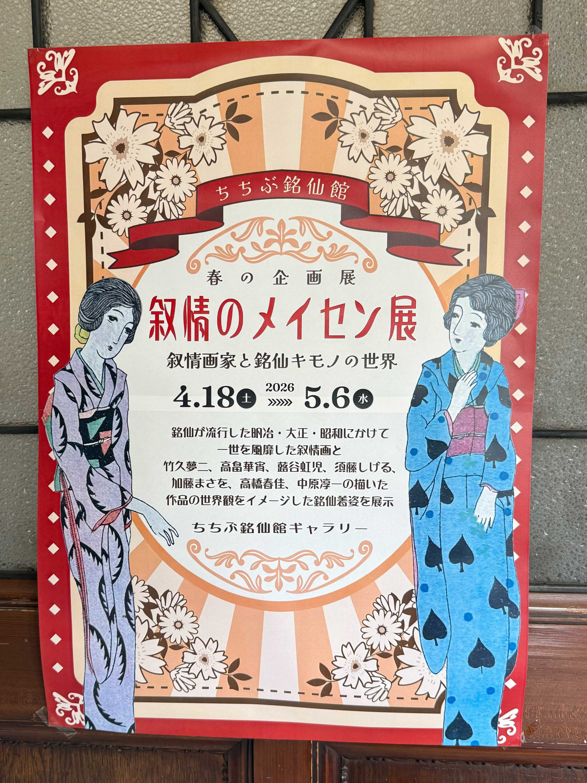 ちちぶ銘仙館(秩父市熊木町)内のギャラリーで4月18日、春の企画展「叙情のメイセン展 叙情画家と銘仙キモノの世界」が始まった。