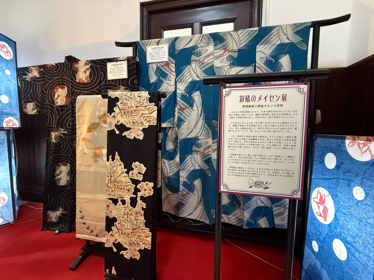 ちちぶ銘仙館(秩父市熊木町)内のギャラリーで4月18日、春の企画展「叙情のメイセン展 叙情画家と銘仙キモノの世界」が始まった。