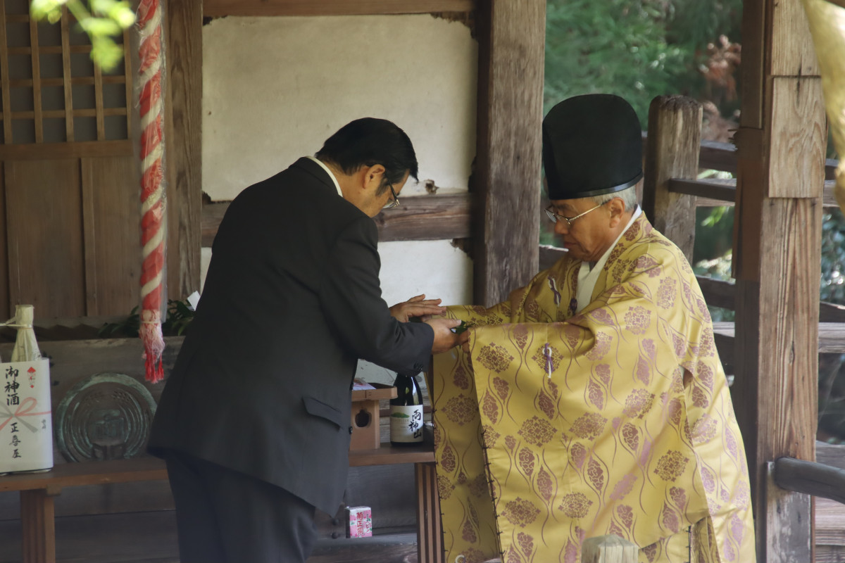 玉串を捧げる小鹿野町持田孝史副町長と鈴木正行宮司